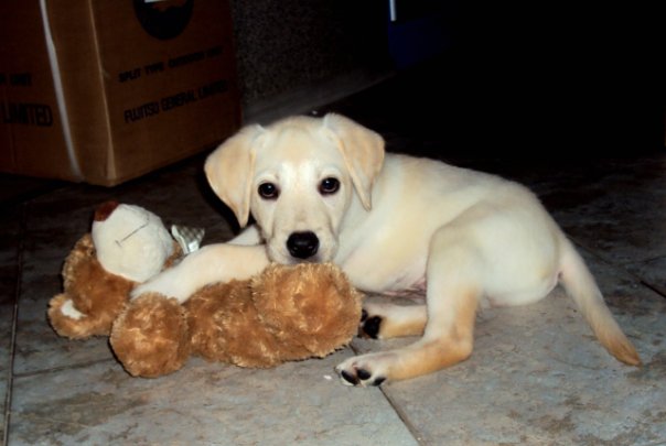| а у меня дома живёт мой лабродорчик))) его зовут Лаки,ему всего три месяца..