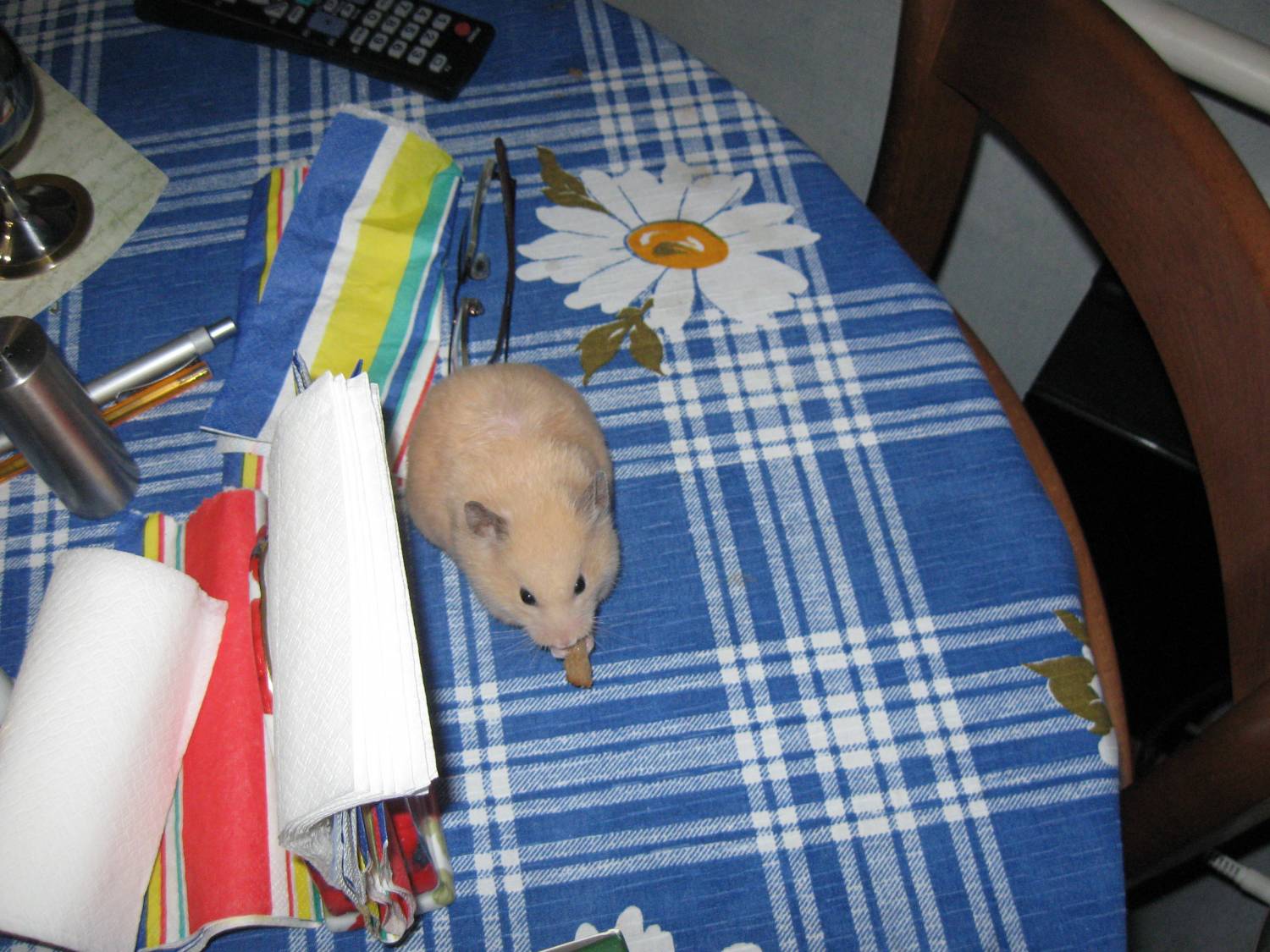 | Рассказывайте о своих маленьких друзьях))) У меня например живет хомячка вот она на моей днюхе)) на фотке она сьела сухарик))))
